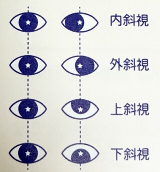 正面を見たときに片方の眼はまっすぐみているけど、もう片方の眼は視線が内方や外方にずれている状態のことをいいます。
