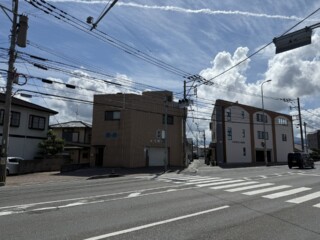 ②40メートルほど進み、右手にある三角形の駐車場です。